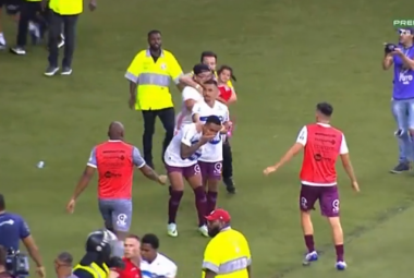 Nestvarna scena: Sa bebom u naručju utrčao na teren i udario fudbalera u međunožje (VIDEO)