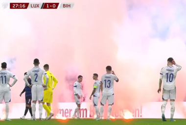 Navijači BiH opet bakljama zasuli teren i izazvali prekid utakmice u Luksemburgu