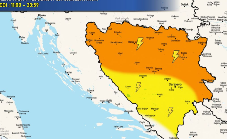 Danas nas očekuje jače nevrijeme: “Veća količina padavina, sitan led i prolazno pojačan vjetar”