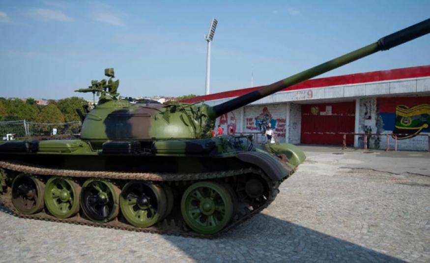 Navijači Crvene zvezda pred stadion dovukli tenk