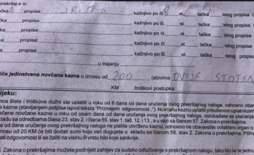 Kazna od 200 KM jer je policajcu na izgovorenu riječ “Olovo” odgovorio...