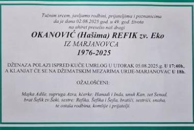 Na Ahiret preselio Okanović (Hašima) Refik zvani Eko