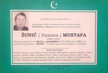 Na Ahiret preselio Žunić (Hasana) Mustafa