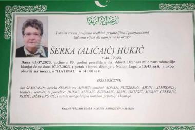 Na Ahiret preselila Šerka (Alićaić) Hukić