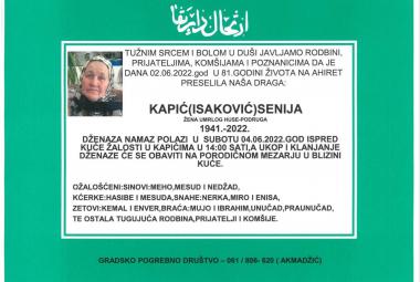 Na Ahiret preselila Kapić (Isaković) Senija