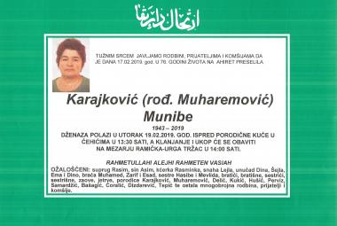 Na Ahiret preselila Karajković (rođ. Muharemović) Munibe