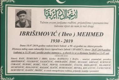 Na Ahiret preselio Ibrišimović ( Ibro ) Mehmed