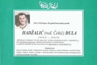 Na Ahiret preselila Hadžalić (rođ. Ćehić) Đula