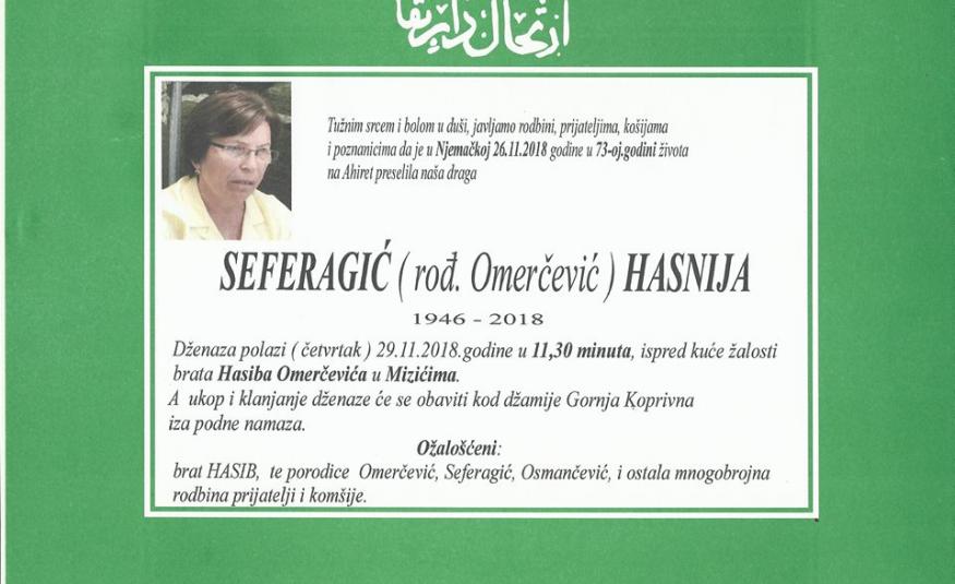 Na Ahiret preselila Seferagić (rođ.Omerčević) Hasnija