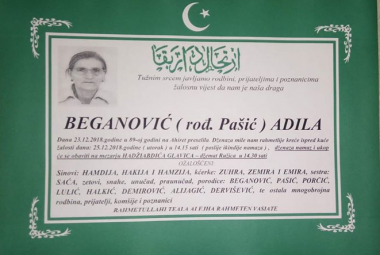 Na Ahiret preselila Beganović (rođ. Pašić) Adila