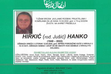 Na Ahiret preselila Hirkić (rođ. Jušić) Hanko