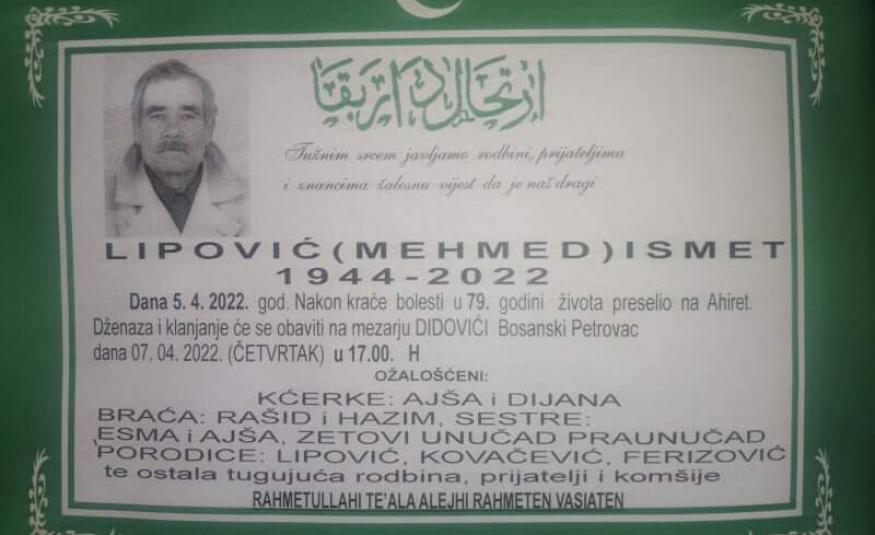 Na Ahiret preselio Lipović (Mehmed) Ismet