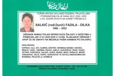 Na Ahiret preselila Salkić (rođ. Durić) Fadila- Dilka