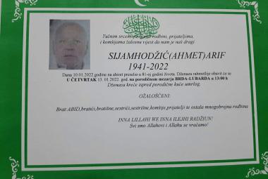 Na ahiret preselio Sijamhodžić (Ahmet) Arif