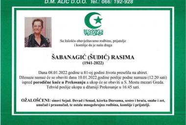 Na ahiret preselila Šabanagić (Šudić) Rasima