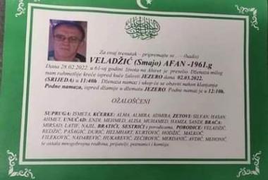 Na Ahiret preselio Veladžić (Smajo) Afan