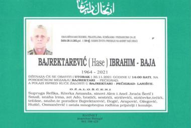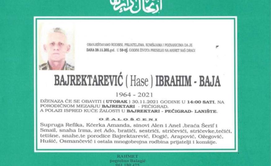 Na ahiret preselio Bajrektarević (Hase) Ibrahim-Baja