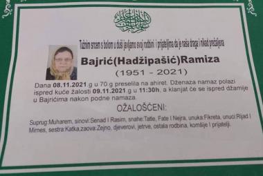 Na ahiret preselila Bajrić (Hadžipašić) Ramiza