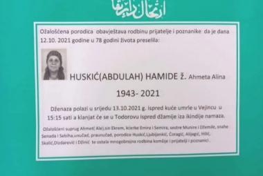 Na ahiret preselila Huskić (Abdulah) Hamide ž. Ahmeta Alina