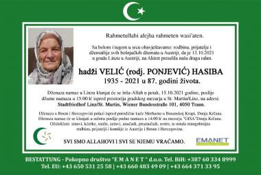 Na ahiret preselila hadži Velić (rođ. Ponjević) Hasiba