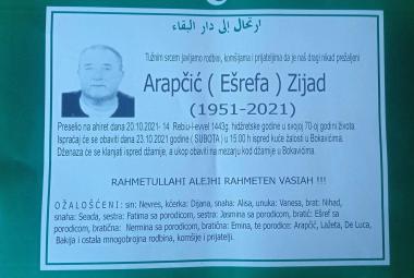Na ahiret preselio Arapčić (Ešrefa) Zijad