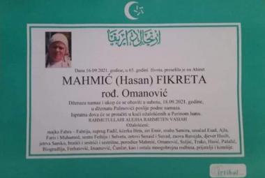 Na ahiret preselila Mahmić (Hasan) Fikreta rođ. Omanović
