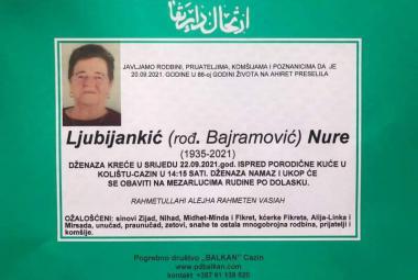 Na ahiret preselila Ljubijankić (rođ. Bajramović) Nure