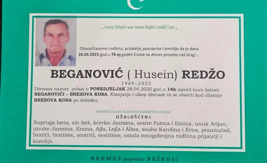 Na ahiret preselio Beganović (Husein) Redžo