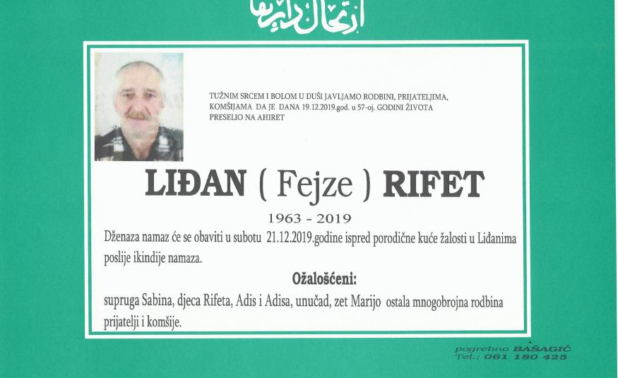 Na Ahiret preselio Liđan (Fejze) Rifet