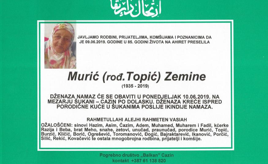Na Ahiret preselila Murić (rođ. Topić) Zemine