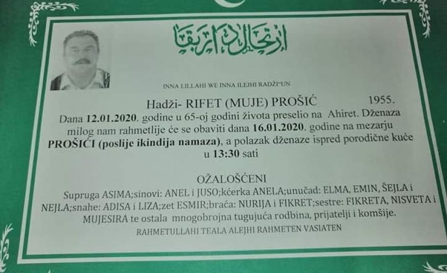 Na Ahiret preselio Prošić (Muje) hadži-Rifet