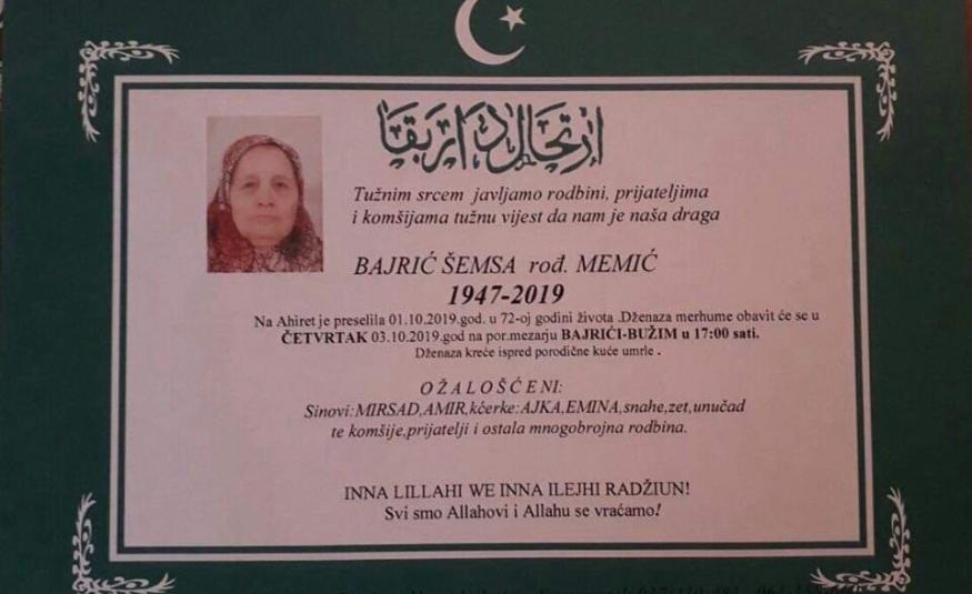 Na Ahiret preselila Bajrić (rođ. Memić) Šemsa