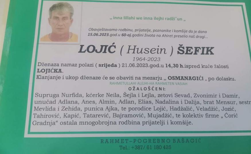 Na Ahiret je preselio Lojić (Husein) Šefik