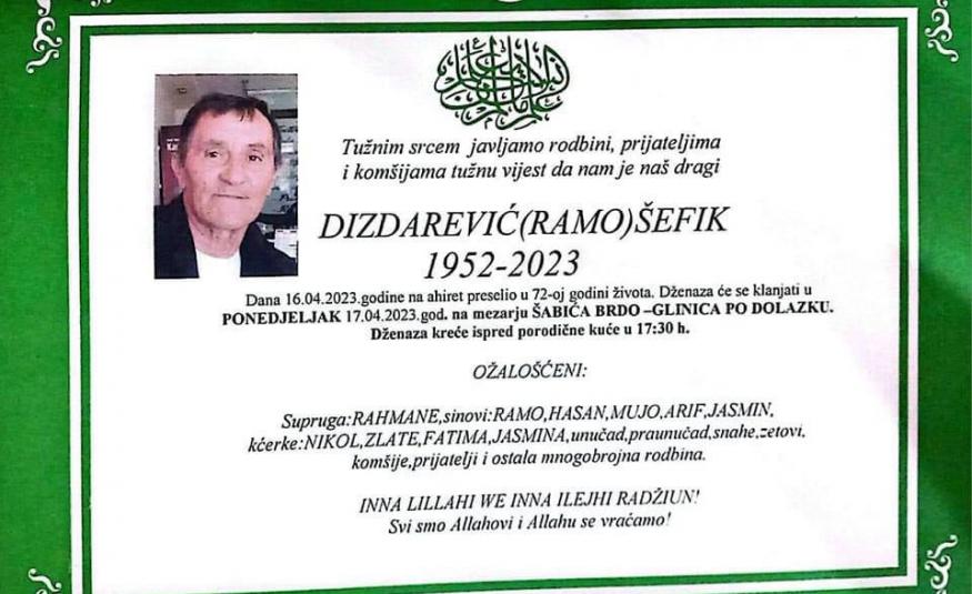 Na Ahiret preselio Dizdarević (Ramo) Šefik