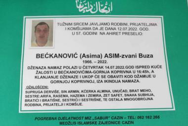 Na Ahiret preselio Bećkanović (Asima) Asim-zvani Buza