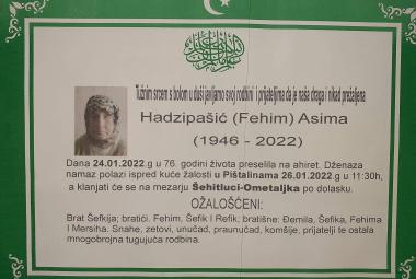 Na ahiret preselila Hadžipašić (Fehim) Asima