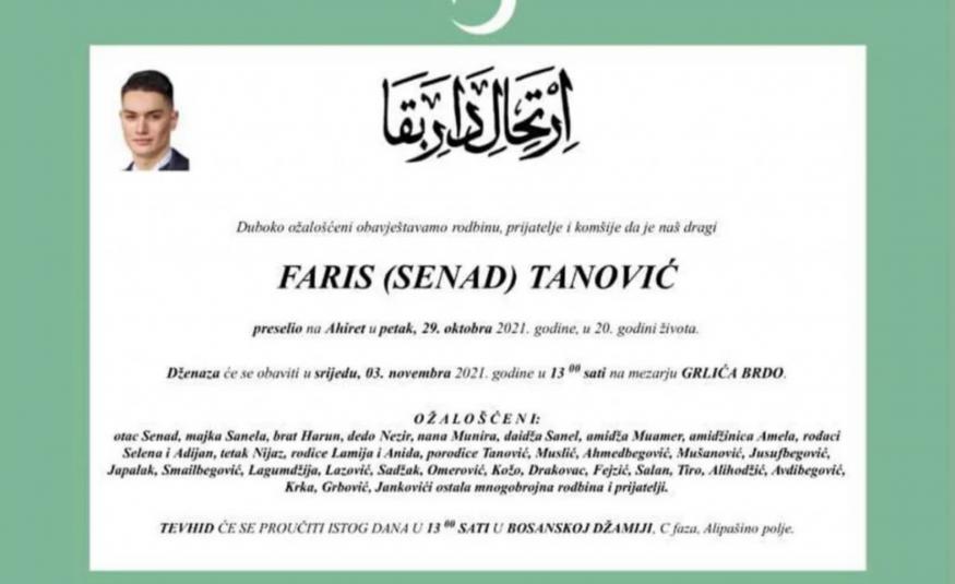Na vječni počinak Faris Tanović će biti ispraćen sutra