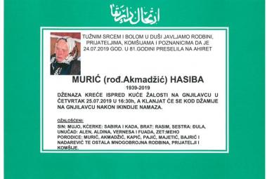 Na Ahiret preselila Murić (rođ. Akmadžić) Hasiba