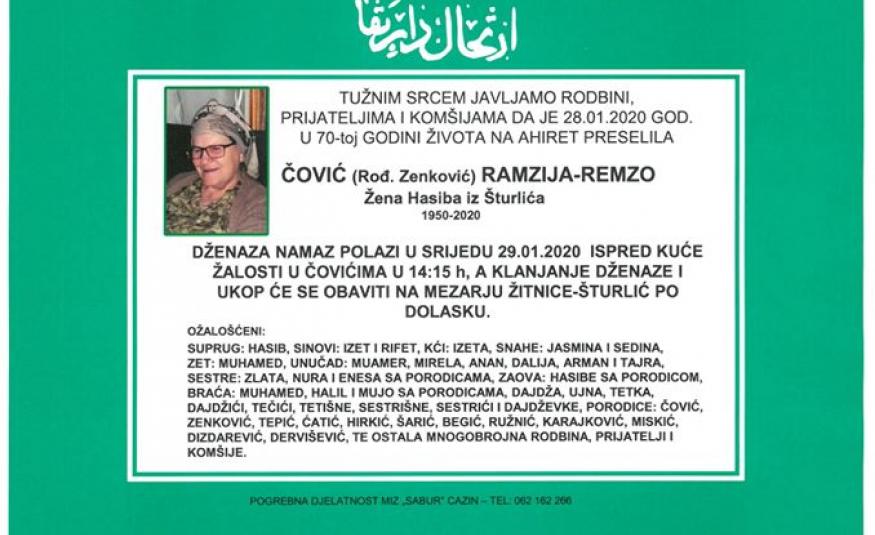 Na Ahiret preselila Čović (rođ. Zenković) Ramzija-Remzo