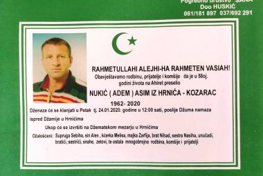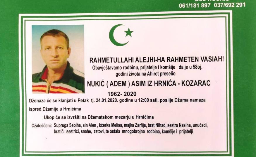 Na Ahiret preselio Nukić (Adem) Asim iz Hrnića - Kozarac