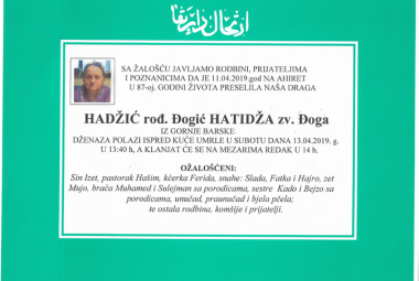 Na Ahiret preselila Hadžić (rođ. Đogić) Hatidža zv. Đoga