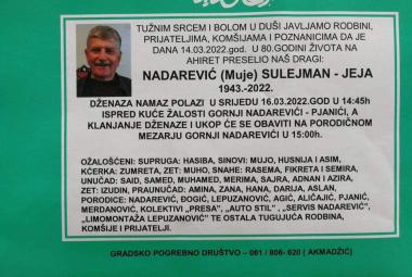 Na Ahiret preselio Nadarević (Muje) Sulejman- Jeja
