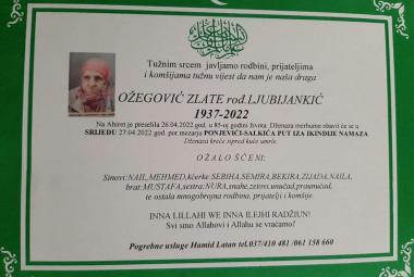 Na Ahiret preselila Ožegović Zlate (rođ. Ljubijankić)
