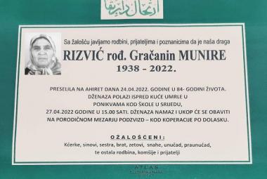 Na Ahiret preselila Rizvić (rođ. Gračanin) Munire