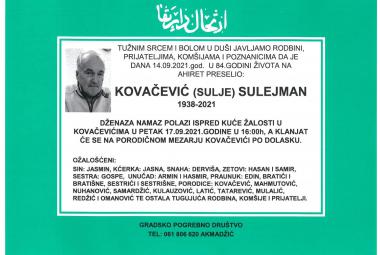 Na ahiret preselio Kovačević (Sulje) Sulejman