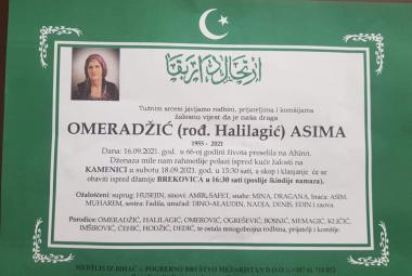Na ahiret preselila Omeradžić (rođ. Halilagić) Asima