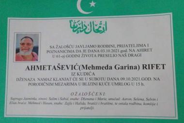Na ahiret preselio Ahmetašević (Mehmeda Garina) Rifet