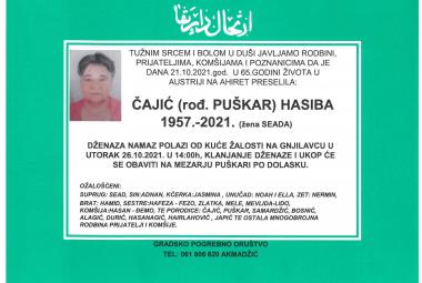 Na ahiret preselila Čajić (rođ. Puškar) Hasiba