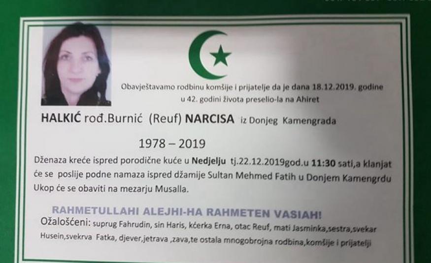 Na Ahiret preselila Halkić rođ. Burnić (Reuf) Narcisa