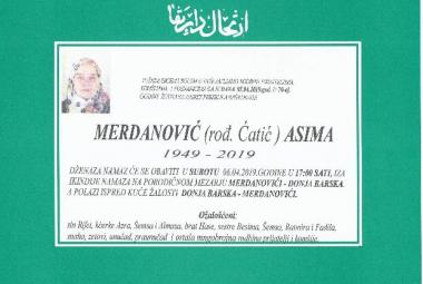 Na Ahiret preselila Merdanović (r. Ćatić) Asima
